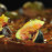- Gebraten Riesengarnelen in Tomatensauce und Rucola